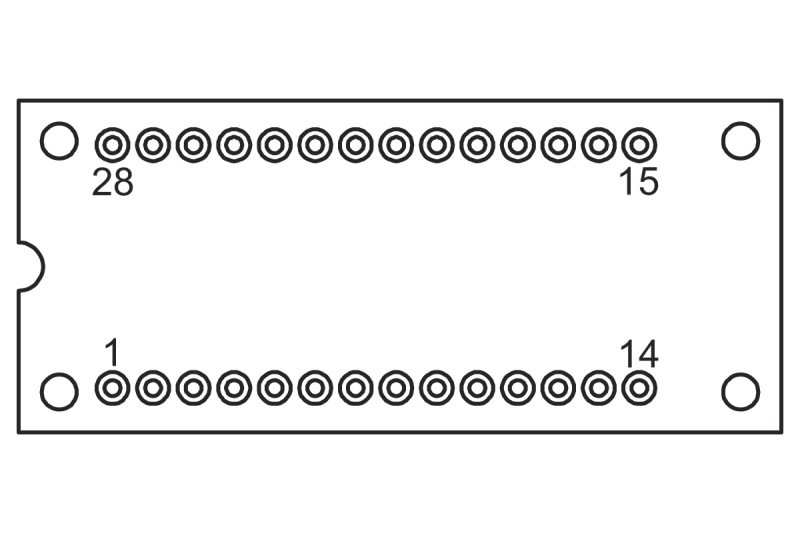 The electronics module fits a standard 28 pin DIP socket and can easily be integrated on a printed circuit board together with other electronics. The sensor module can either be wired through the circuit board or connected by a special flat cable from the electronics module.