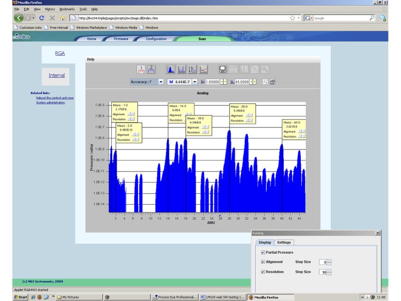In addition to the standard, built-in web applications, software control is also available through an optional Windows application, offering the best possible fit to any customer requirement. The field proven software provides basic RGA controls but with more functionality than the built-in web application.