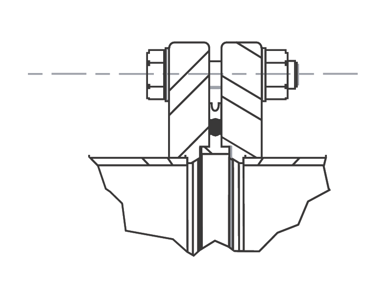 There are a variety of choices available when selecting centering ring assemblies. Use Viton where temperatures, chemical resistance or long installed life make it beneficial. Use Buna-N where temperatures are moderate, and installed useful life is consistent with this material. The centering ring is available in stainless steel or aluminum. Use stainless steel where chemical resistance is needed. Flanges and seals are designed to be tightened to metal to metal contact. The torque rating for clamps and bolts is 7 to 10 pounds per foot.