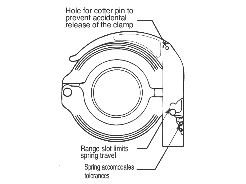 The ISO-KF toggle style flange clamp is self-adjusting to provide enough force to fully compress the O-Ring seal. The heavy-duty spring covers the full range of production tolerances of ISO-KF flanges. Toggle clamps are available with or without a lanyard for the fastening pin.
