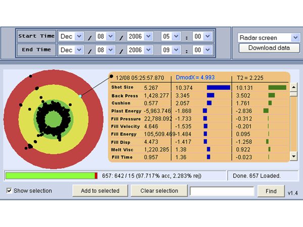 This approach consists of creating a multivariate model that accurately predicts when a part is acceptable or out-of-spec, based on key process data. The value of the multivariate detection system is highly dependent on the multivariate model that is used to perform the analysis.