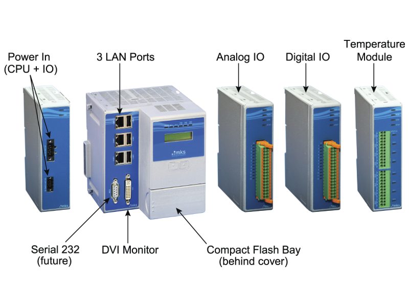 The PAC platform CPU module, which runs the SenseLink QM, can interface directly with your own PLC over Ethernet and comes with a minimum size of 130 x 125 x 140 mm (W x H x D), with expandable common IO modules (analog, digital, temperature input) of 35 mm x 125 mm x 92.3 mm (W x H x D). The number of process variables which can be collected is potentially unlimited.