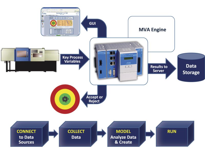 SenseLink™ QM data monitoring system provides an entire solution for process monitoring, fault detection, and part quality prediction utilizing multivariate analysis (MVA) technology. Adding MVA to your process will provide the highest level of process monitoring and fault detection attainable. All necessary data acquisition, multivariate processing, electrical and control functions come from a self contained, compact unit.